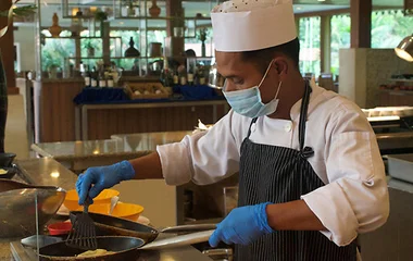Our staff have been trained on hospitality cleaning measures and biowaste disposal based on the World Health Organisation guidelines. Masks are worn by all housekeeping, kitchen and Kids’ Club staff. Hydro-alcohol hand sanitisers are provided for guests’ and staff usage and placed around the resort premises.
