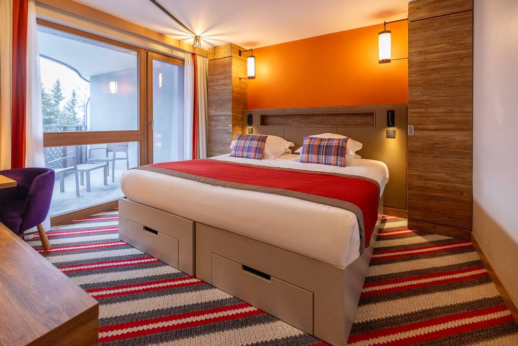 A cosy refuge high up in the Grandes Rousses mountains, the Alpe d’Huez Resort is an exceptional spot which guarantees unforgettable snow experiences. This renovated and expanded Club Med Resort benefits from sun-soaked ski slopes with the largest variety of altitudes in the Alps. Put on your skates and glide around the ice rink in the heart of a bustling ski resort, or try out skijoring, pulled by a horse. Enjoy a local saucisson and a glass of white wine(1) in the contemporary ambiance of the le Pic Blanc restaurant.